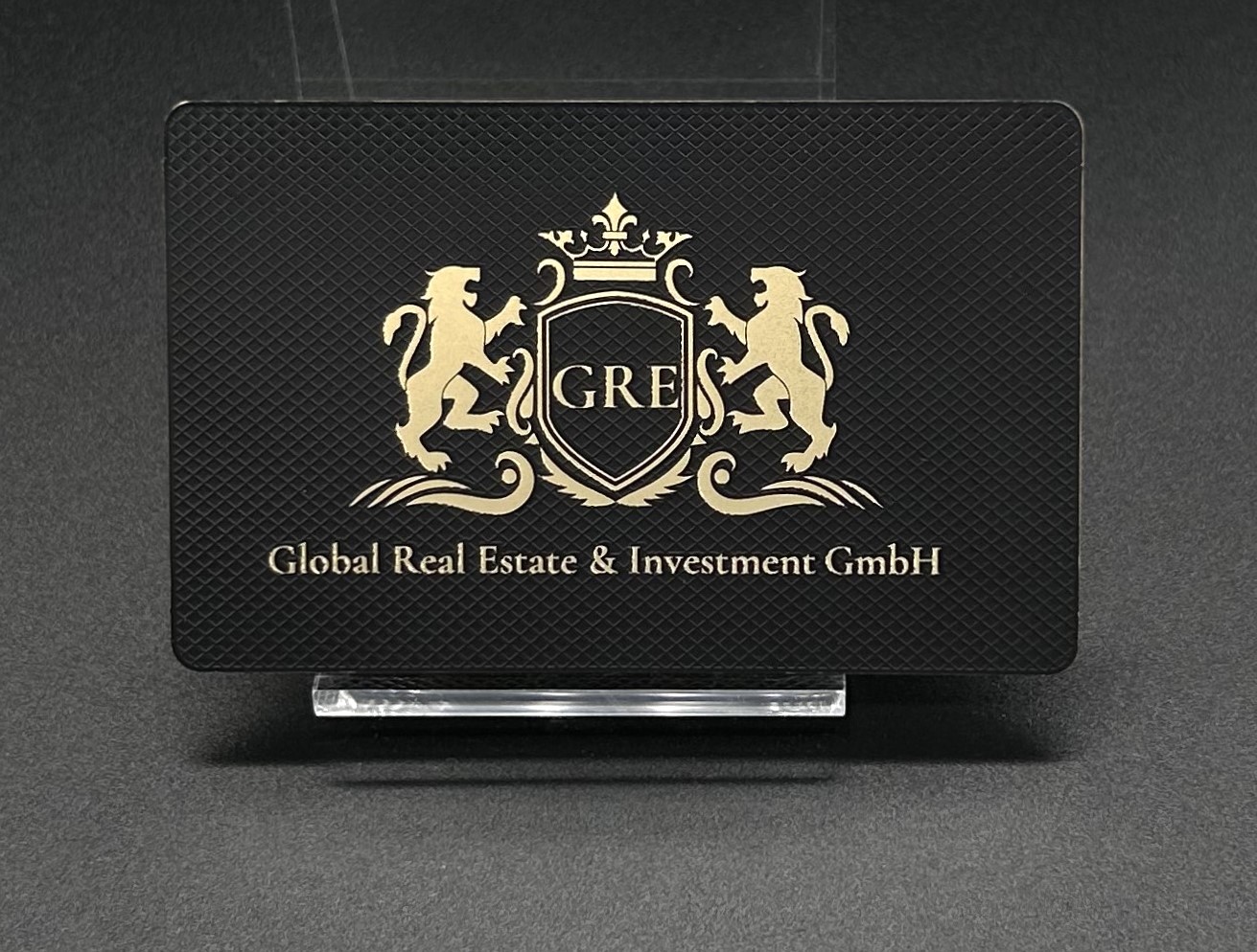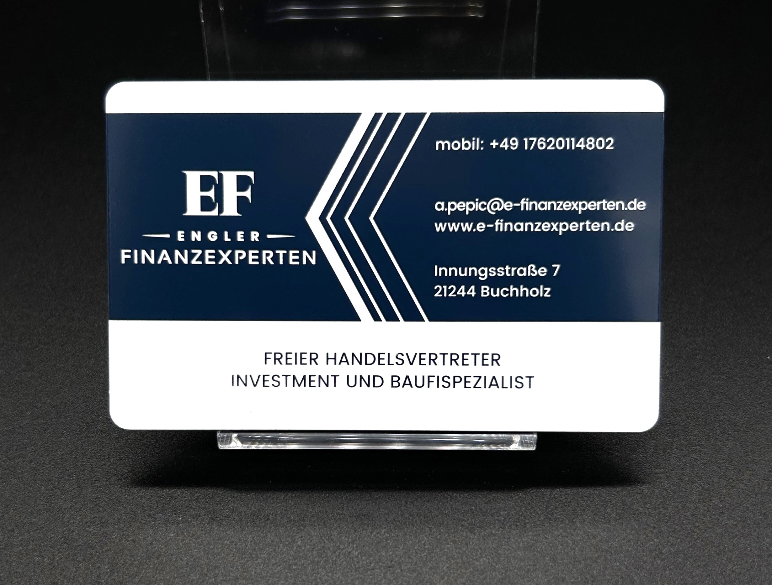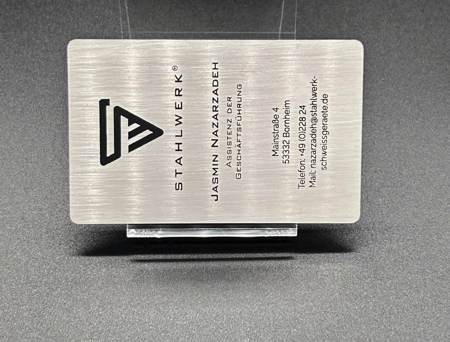 Ob eine einfach Metallvisitenkarte, ausgefallene Varianten mit Gittermuster, NFC-Chip, eingraviertem Logo oder eine von 4263 weiteren Möglichkeiten.