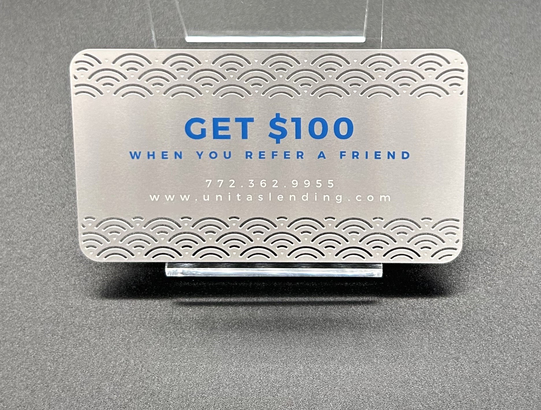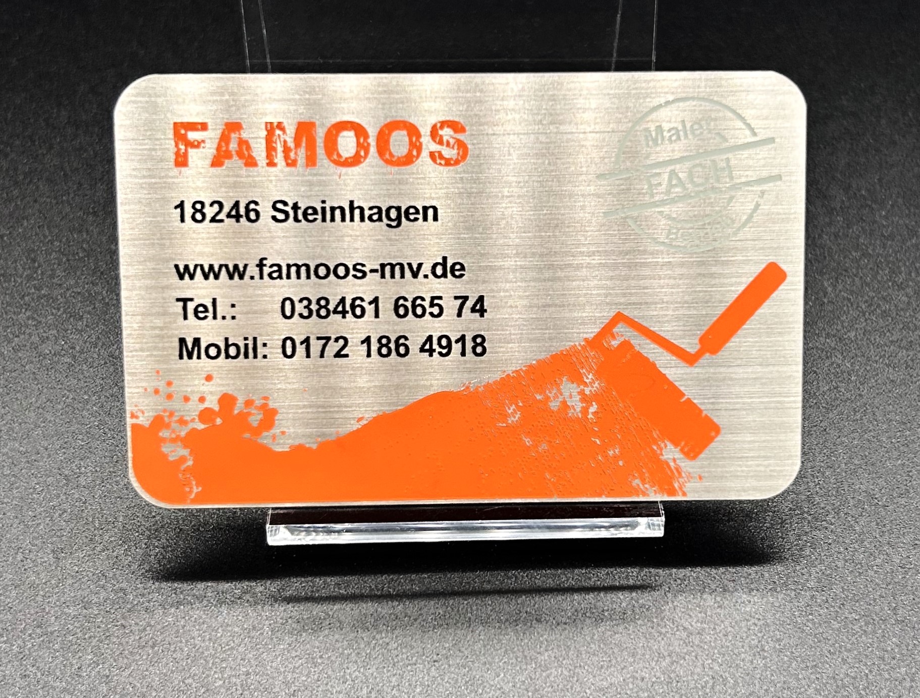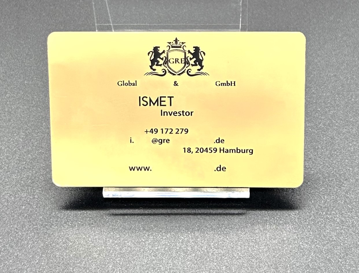 Ob eine einfach Metallvisitenkarte, ausgefallene Varianten mit Gittermuster, NFC-Chip, eingraviertem Logo oder eine von 4263 weiteren Möglichkeiten.