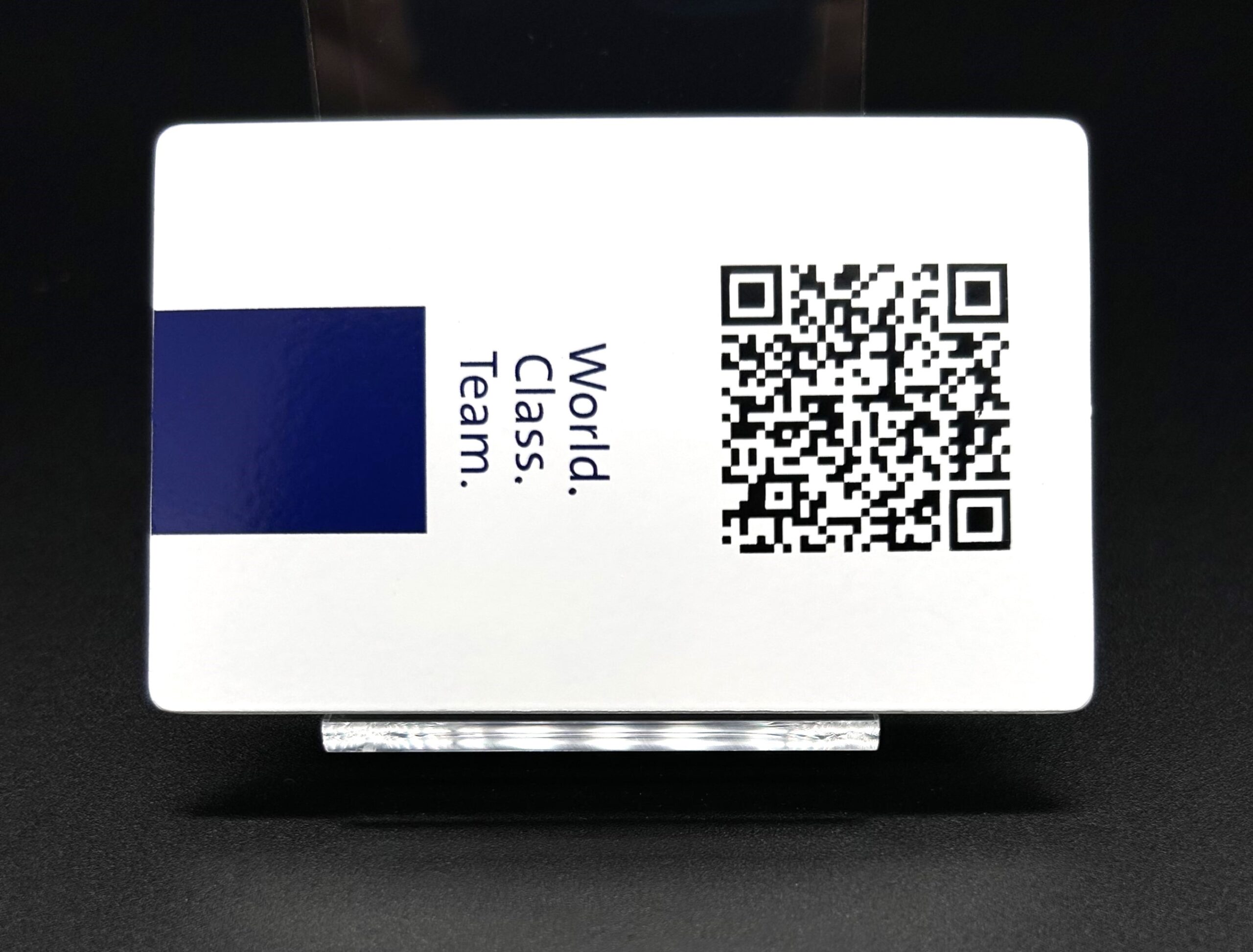 Für satte Farben und einen ausgeprägten Kontrast nutzen wir den Digital Direktdruck. Das Druckbild wird dabei durch subtraktive Farbmischung aus vier genormten Optimalfarben aufgebaut. Cyan (Helio-Echtblau), Magenta (Purpurton), Yellow (Gelb) und Key (Schwarz). Somit sind alle Farbtöne möglich. Die Karte kann farblich glänzend oder matt produziert werden.